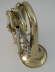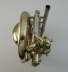 The Victor Special (first photo) was a high-end version of the Victor made in the 1930’s, with mixed brass and nickel-silver construction, deluxe full-length bell engraving, and smaller bore. The unique Victor micro-tuner, normally an inverted “U”, was different, being a complete loop-the-loop, allowing for a shorter bell length. That feature was preserved in Mark’s redesign. Mark did the bell rebending and the finish lacquer work, in addition to all the reconstruction steps in-between.